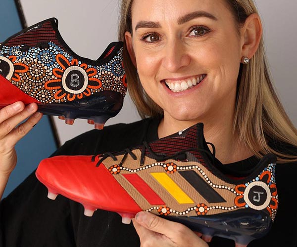 Read moreRee has developed a niche painting unique football boots with stunning Indigenous designs. She painted 13 pairs of boots for Hawthorn AFL club’s leadership team and has also done work for the West Coast Eagles AFLW team.